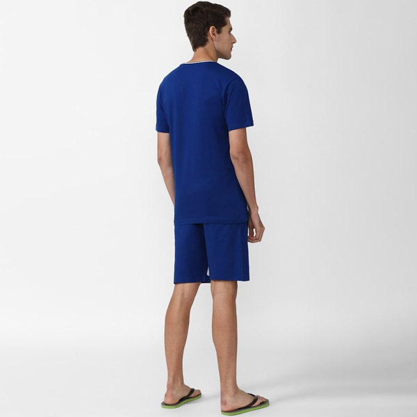 Men Blue & White Printed Cotton Night suit