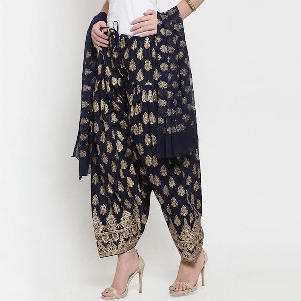 Navy blue and gold-toned printed salwar and dupatta set